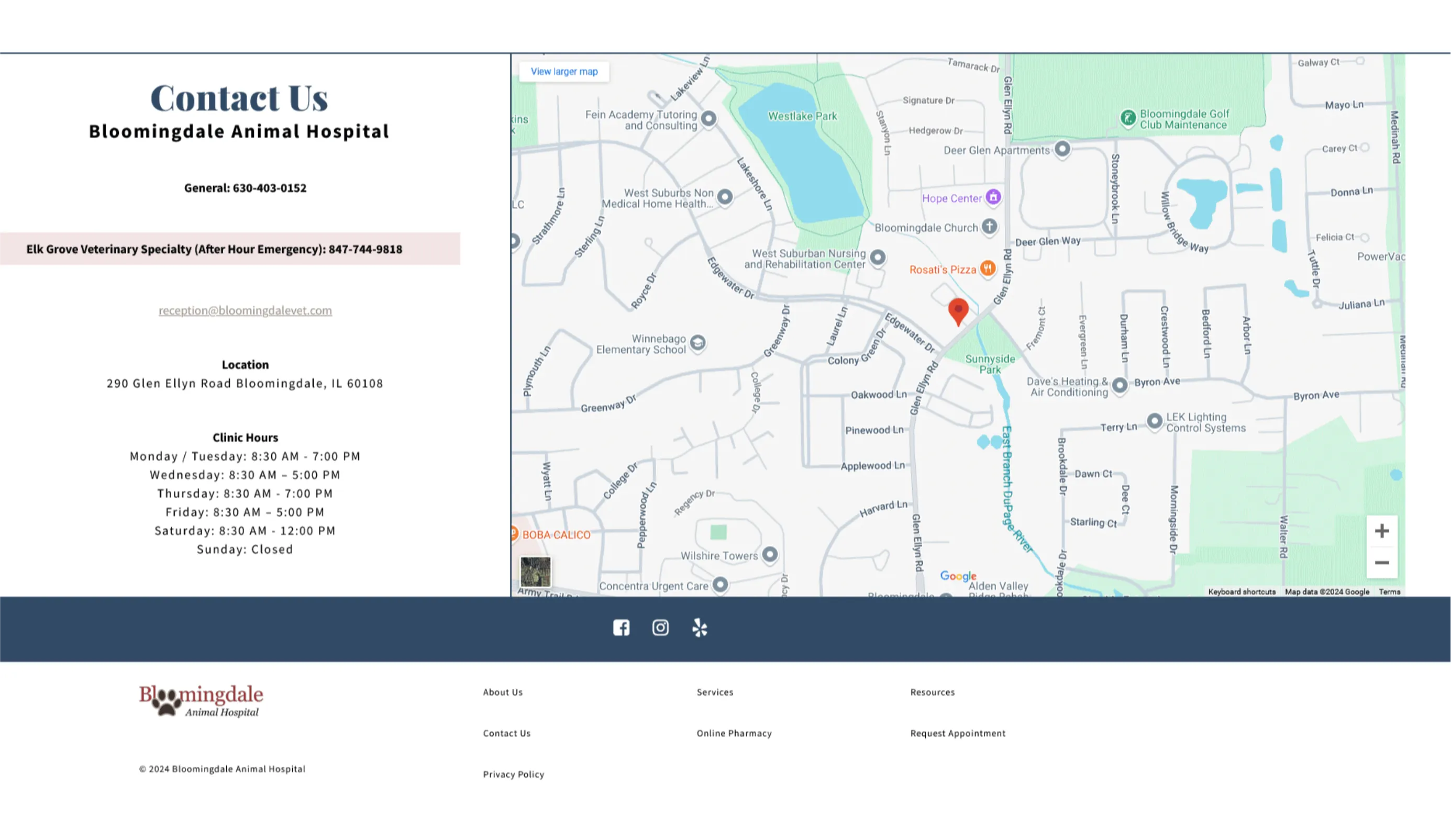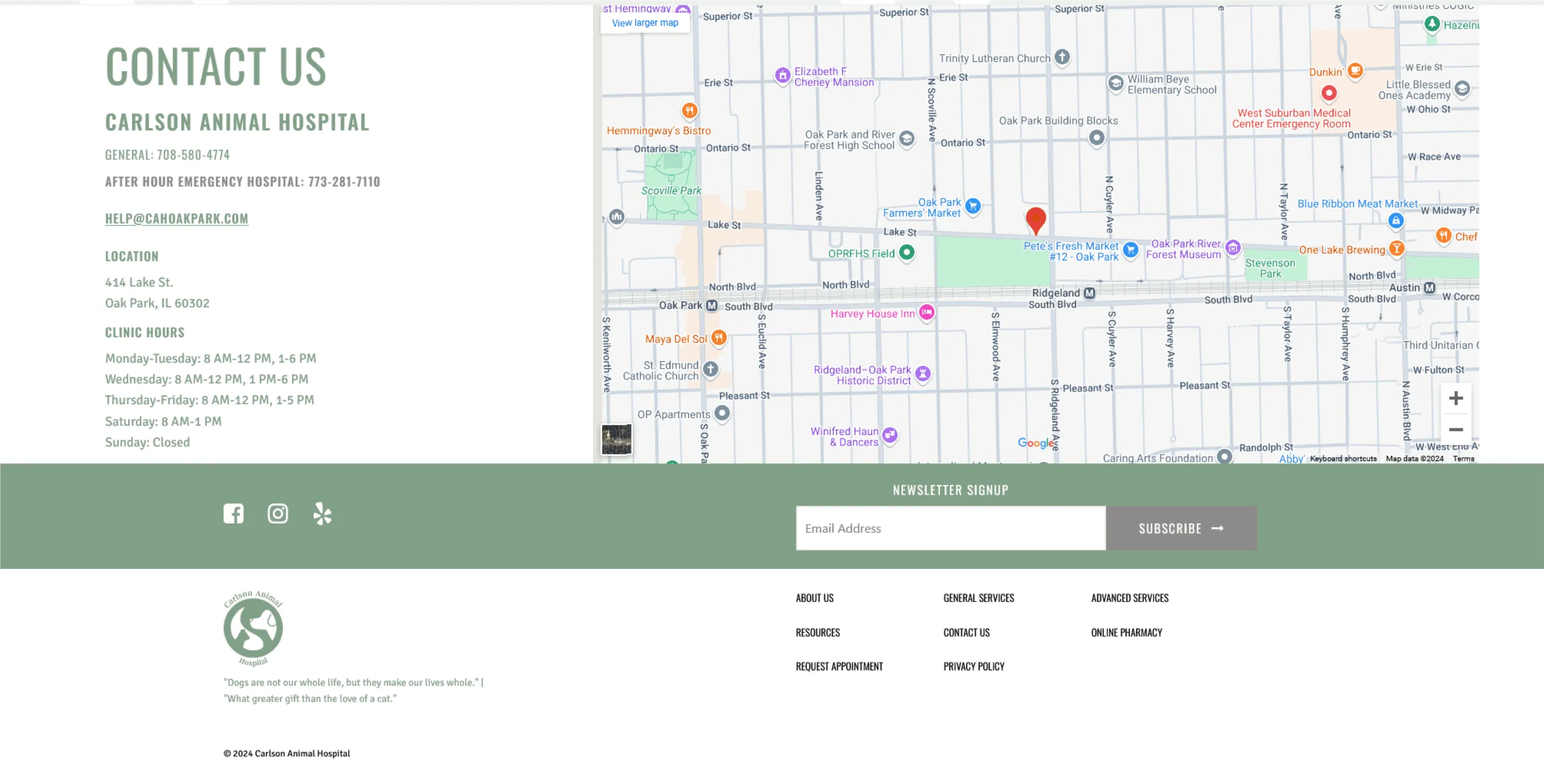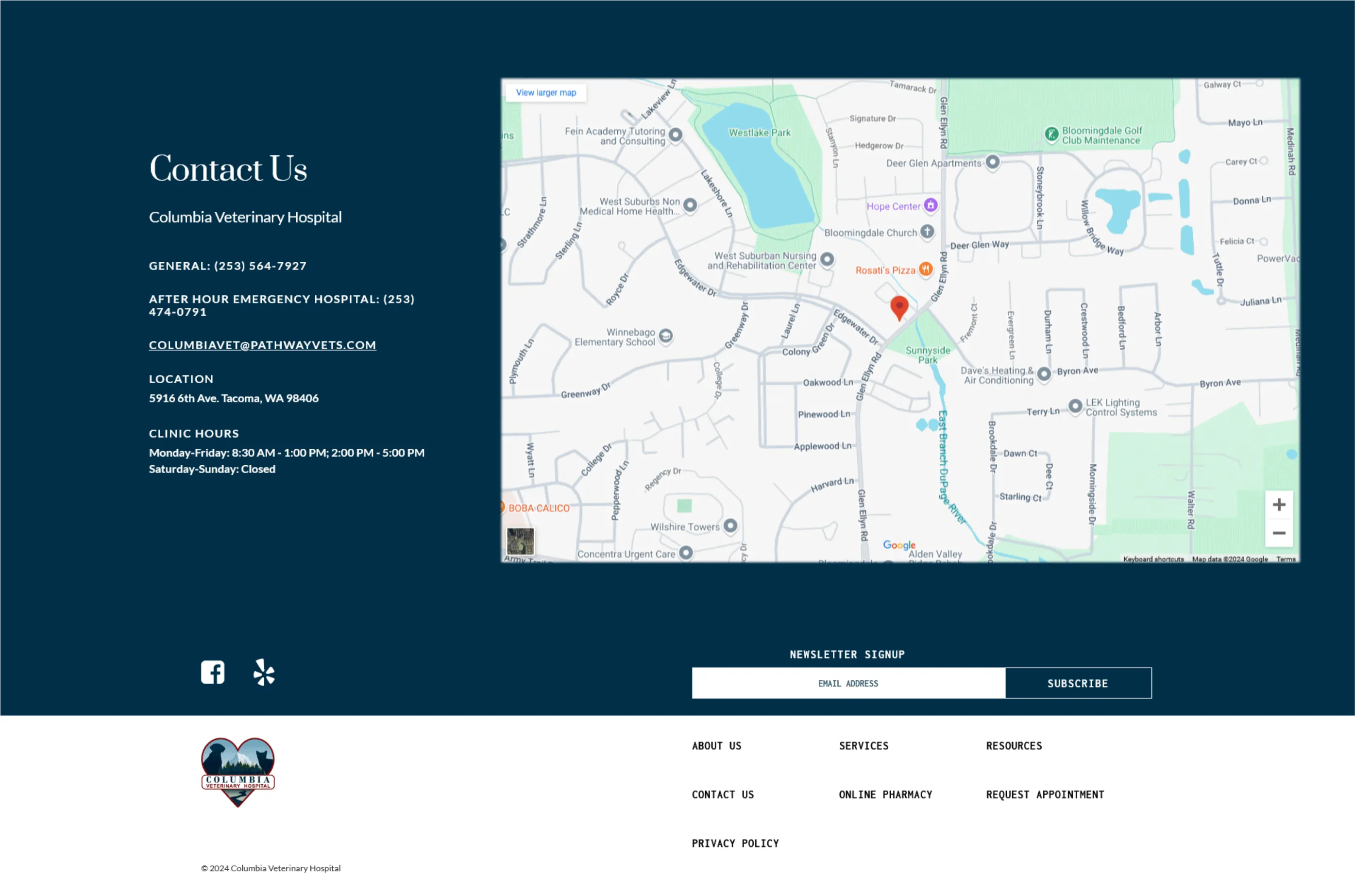 The length of clinic hours varied greatly. The challenge was to use CSS to ensure that the contact us info and Google Map iframe stayed properly scaled and centered.